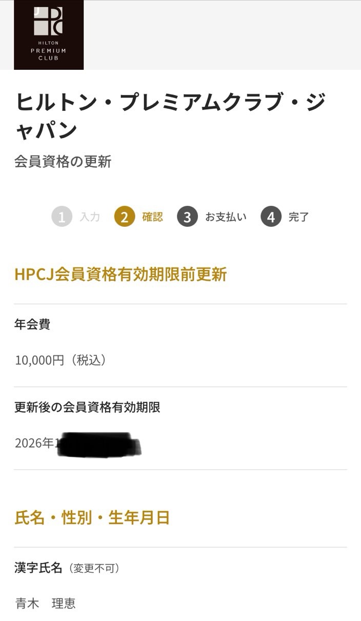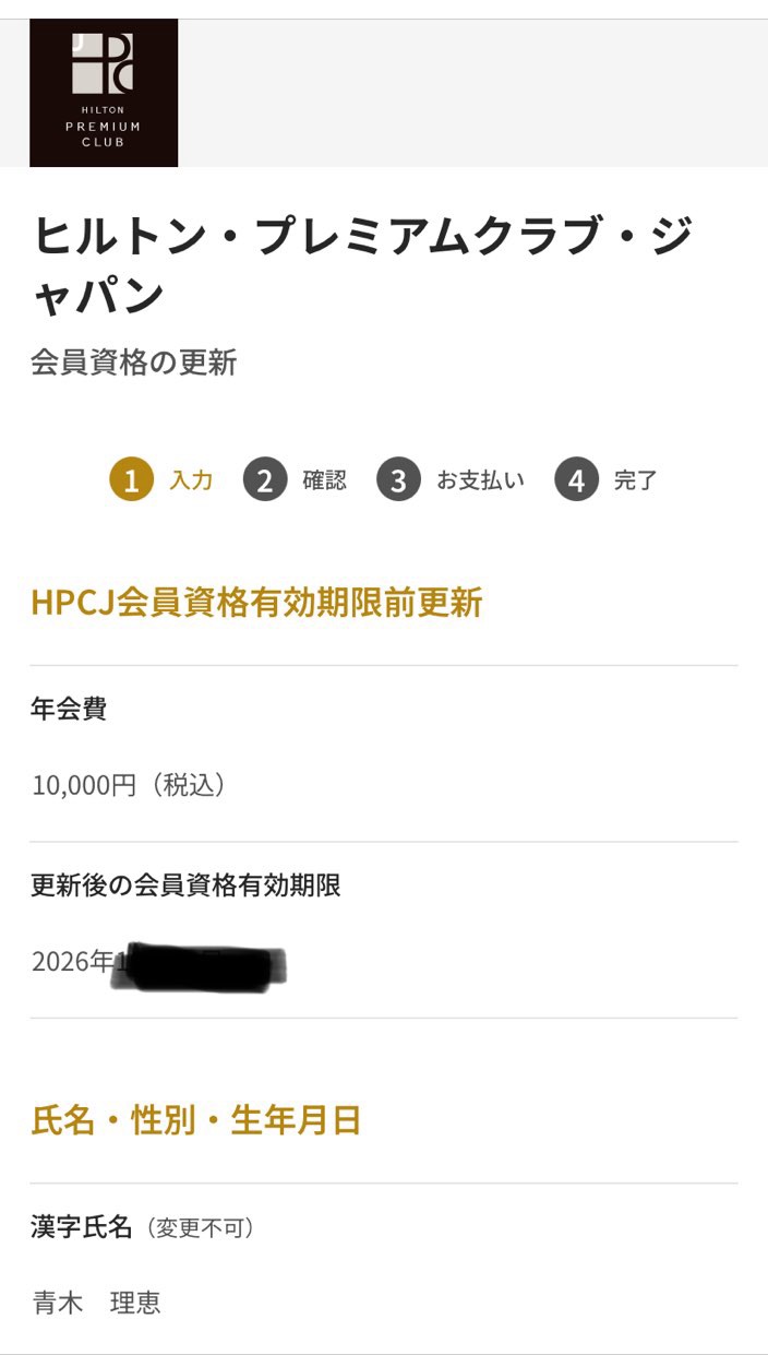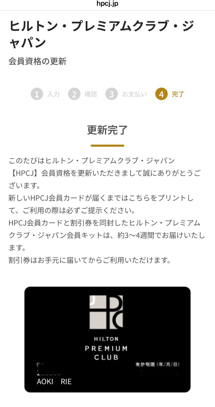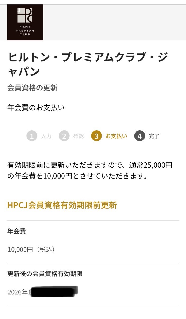 HPCJ(ヒルトン・プレミアム・クラブ・ジャパン)の更新は